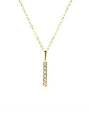 Централният елемент висулка с минималистичен геометричен дизайн придава съвременен и стилен вид на колието. Висулката е допълнително инкрустирана с прозрачни кристали циркони, които добавят блесък и изтънченост. Този аксесоар е изключително подходящ за различни поводи и представлява изящна добавка към вашия облик.