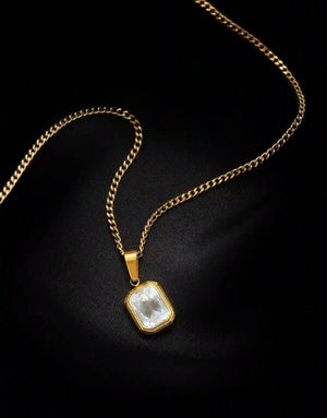 Колие с бял кристал в правоъгълна форма