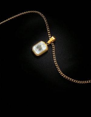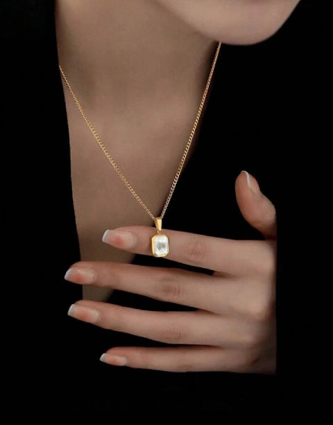 Дамско колие с бял камък в правоъгълна форма