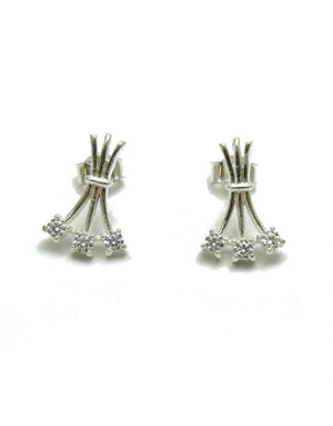 Нежни сребърни обеци с камъни циркон 3мм, размер 1.7 х 1.2см